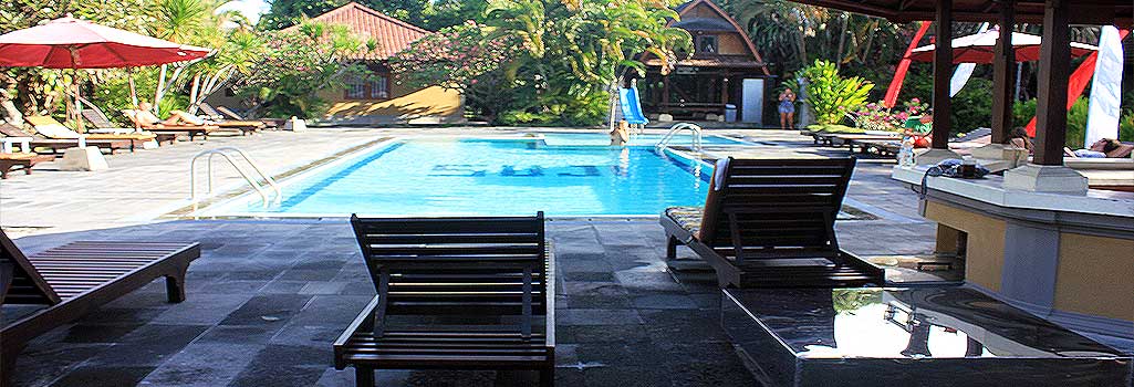 Is in the heart of Kuta, just 15 minute from Ngurah Rai Airport, 350 metres from the beach 200 metres from Legian Street the central activities are, such a shop, discotheque, bank, post office and money changer.